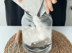 거품기를 이용해 1분간 골고루 저어주세요. 가루가 완전히 풀리지 않아도 괜찮습니다. 비즘의 특허받은 발효 기술이 자연스럽게 재료들을 조화롭게 만들어 줄 거예요.